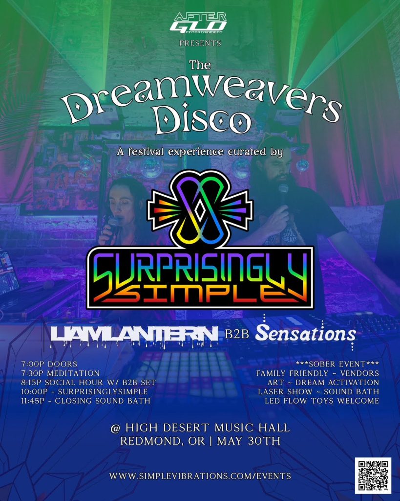A sober event that allows us all to connect more deeply with ourselves, each other, the art, the music and our higher callings. A multi-dimensional artistic expression that you are invited to participate in. Dress in your most sparkly outfit and lets make things GLOW with love.